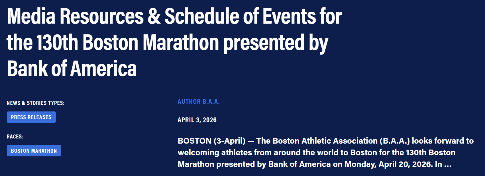 The Boston Athletic Association (B.A.A.) is officially in "Race Week" countdown mode for the 130th Boston Marathon on April 20. This year's lineup is being heralded as the strongest in the race's history.The men's side features four sub-2:04 runners, led by Benson Kipruto (2:02:16), while the women’s field is a masterclass in American depth, featuring legends Sara Hall, Keira D'Amato, and Emily Sisson.